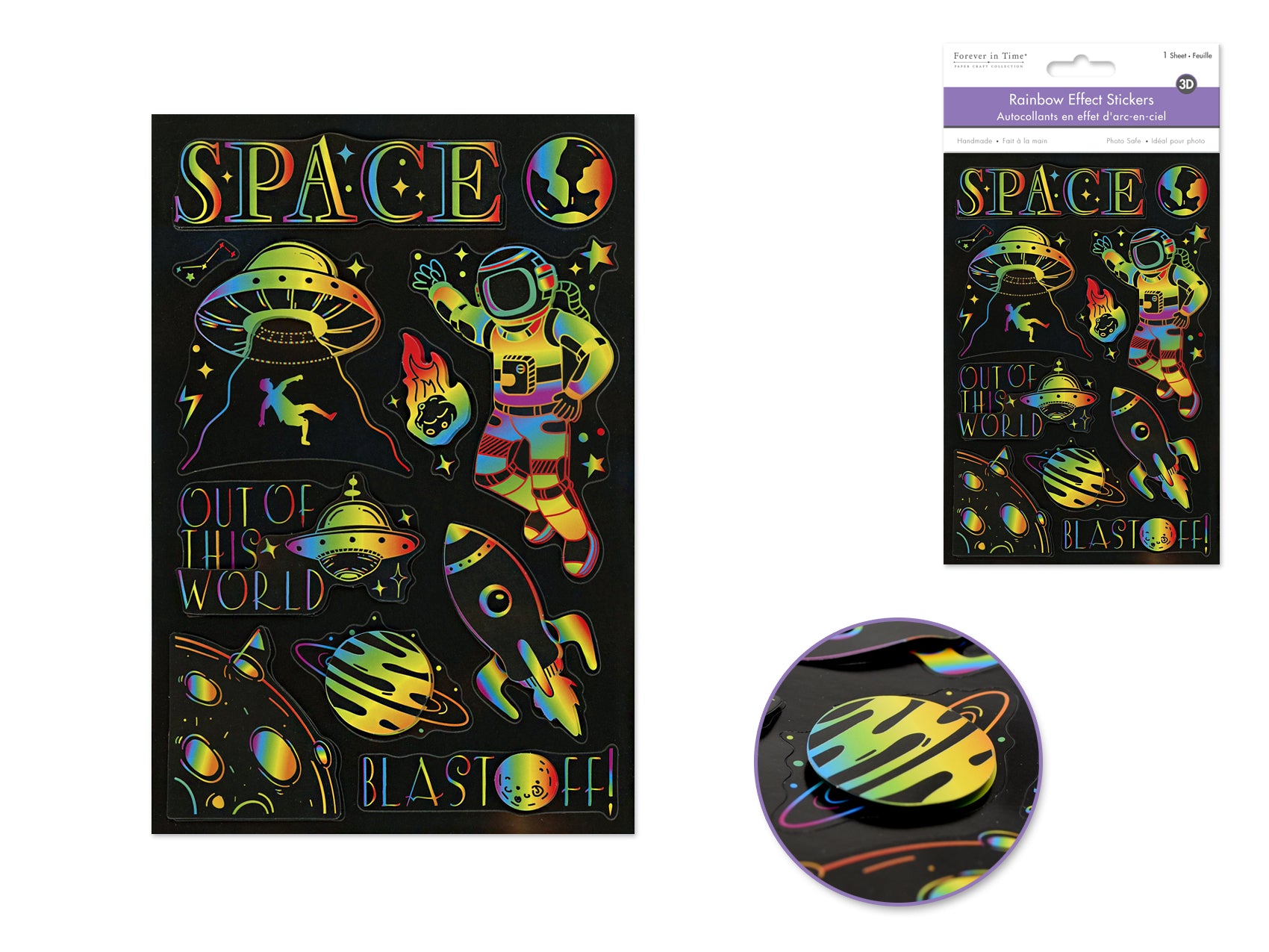 Handmade Sticker: 4.9"x7.3" 3D Rainbow Effect C) Out Of This World