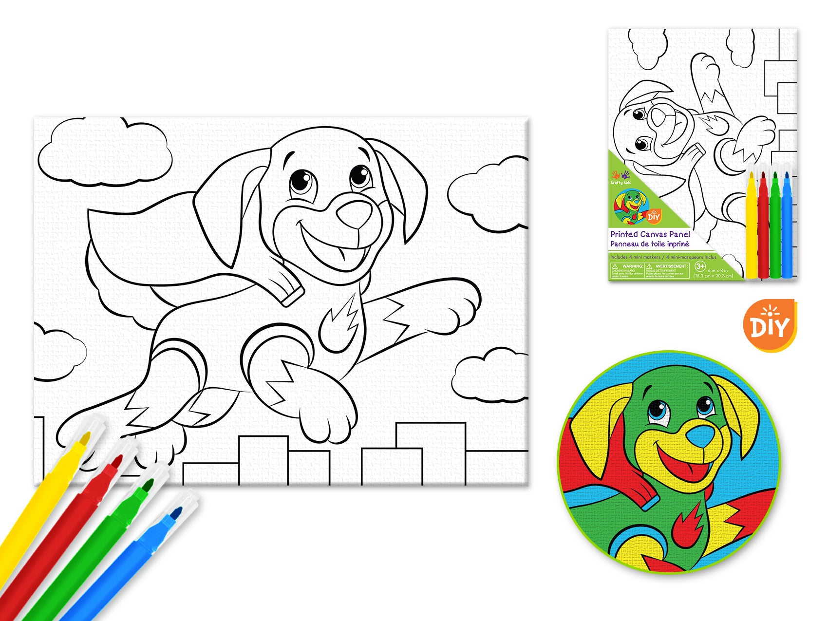 Krafty Kids Kit: 6"x8" DIY Canvas Panel w/4 Mini Markers G) Super Dog