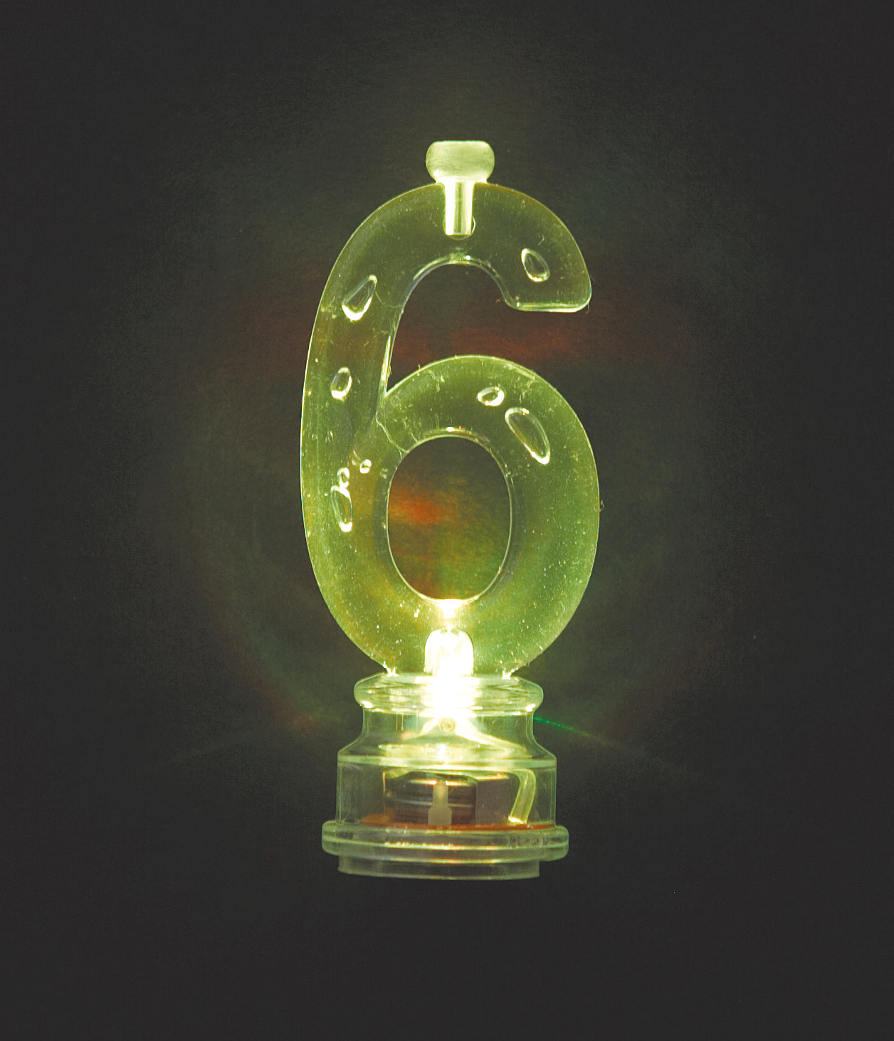 β’ Number 6 Flashing Holder Included β Attractive LED flashing number candle perfect forΒ birthday celebrations.