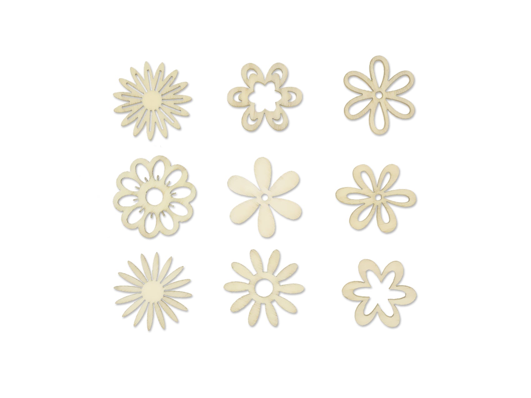 Paper Craft Emb: 45pc Mini Wood Emb in 9-Comp Box A) Floral