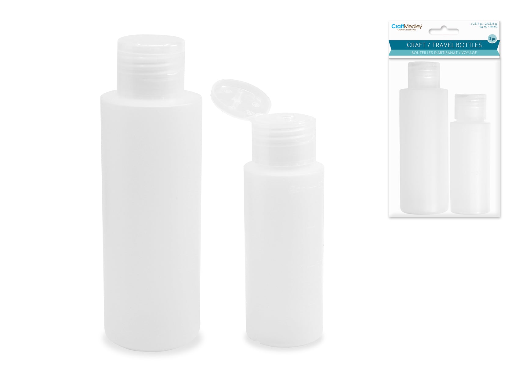 Plastic Bottles: 2oz + 4oz Semi-Transparent with Flip-Top Lid .