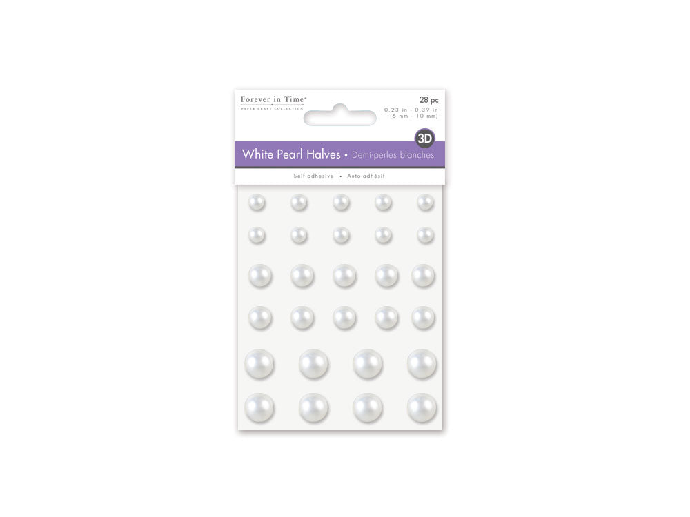 Paper Craft Embellishments: 6-10mm Pearl Halves x28 White Peel-n-Stick