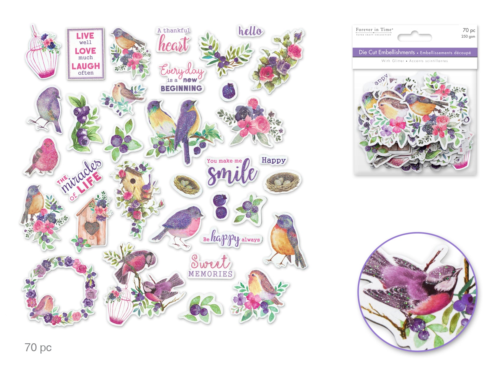 Paper Craft Embellishment: Glitter Die Cuts 250gsm - Birds & Berries Qty : pack of 1 Beautifully designed Die Cut embellishments will add dimension to all your creative craft projects. Great for decoupage and adding detail to Card Making, Scrapbooking and DIY Craft Projects!