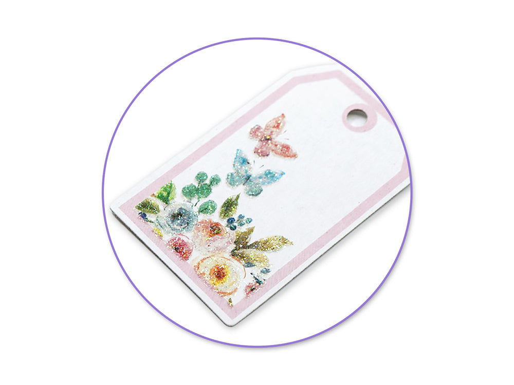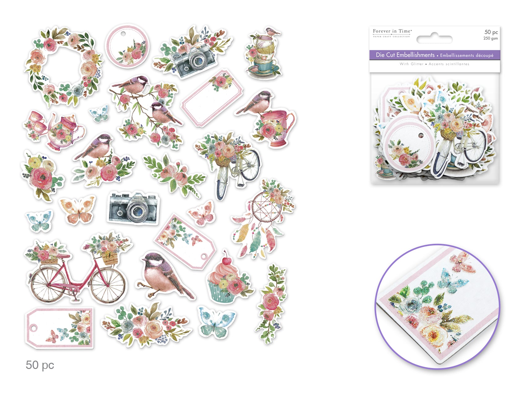 Paper Craft Embellishment: Glitter Die Cuts 250gsm - Spring Frolic Qty : pack of 1 Beautifully designed Die Cut embellishments will add dimension to all your creative craft projects. Great for decoupage and adding detail to Card Making, Scrapbooking and DIY Craft Projects!