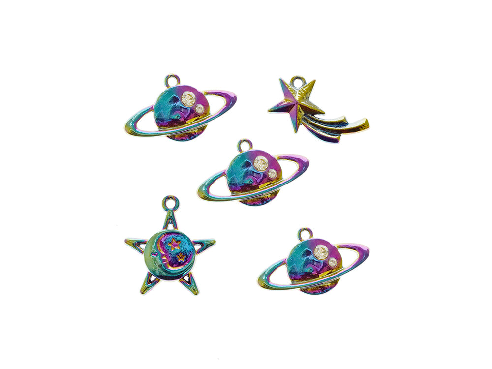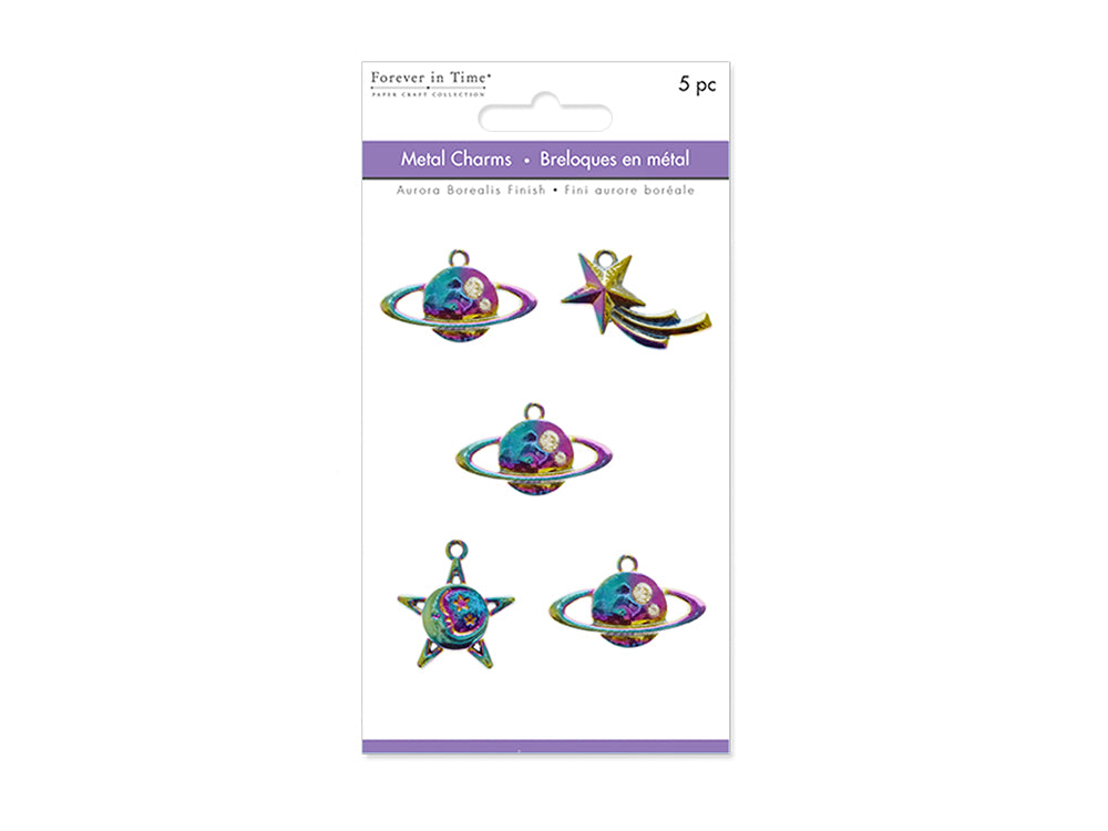 Paper Craft Embellishment: A/B Finish Metal Charms Themed - Planets Qty : pack of 1 Add a unique flair to your next paper craft project with these Aurora Borealis finish charms, the latest trend in paper crafting. Great for Card Making, Scrapbooking, Jewelry Making, and much more!