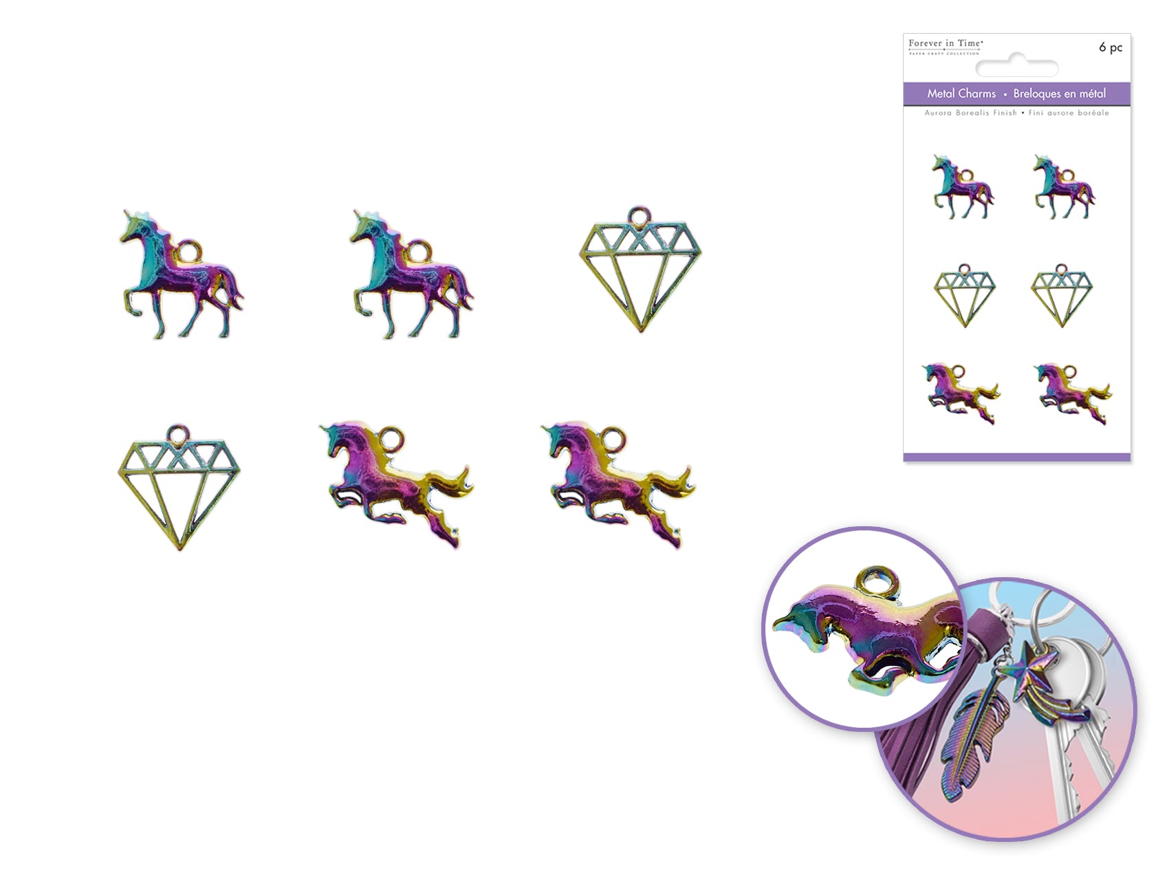 Paper Craft Embellishment: A/B Finish Metal Charms Themed - Unicorn Qty : pack of 1 Add a unique flair to your next paper craft project with these Aurora Borealis finish charms, the latest trend in paper crafting. Great for Card Making, Scrapbooking, Jewelry Making, and much more!
