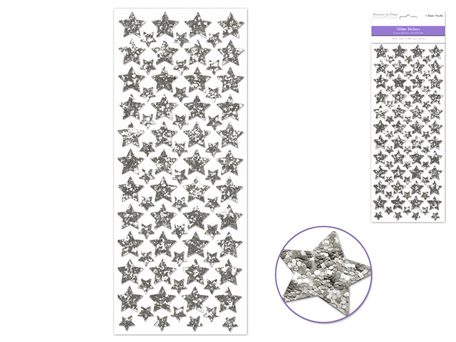 Paper Craft Sticker: 12.5cmx30.5cm Glitter Shapes - Silver Stars