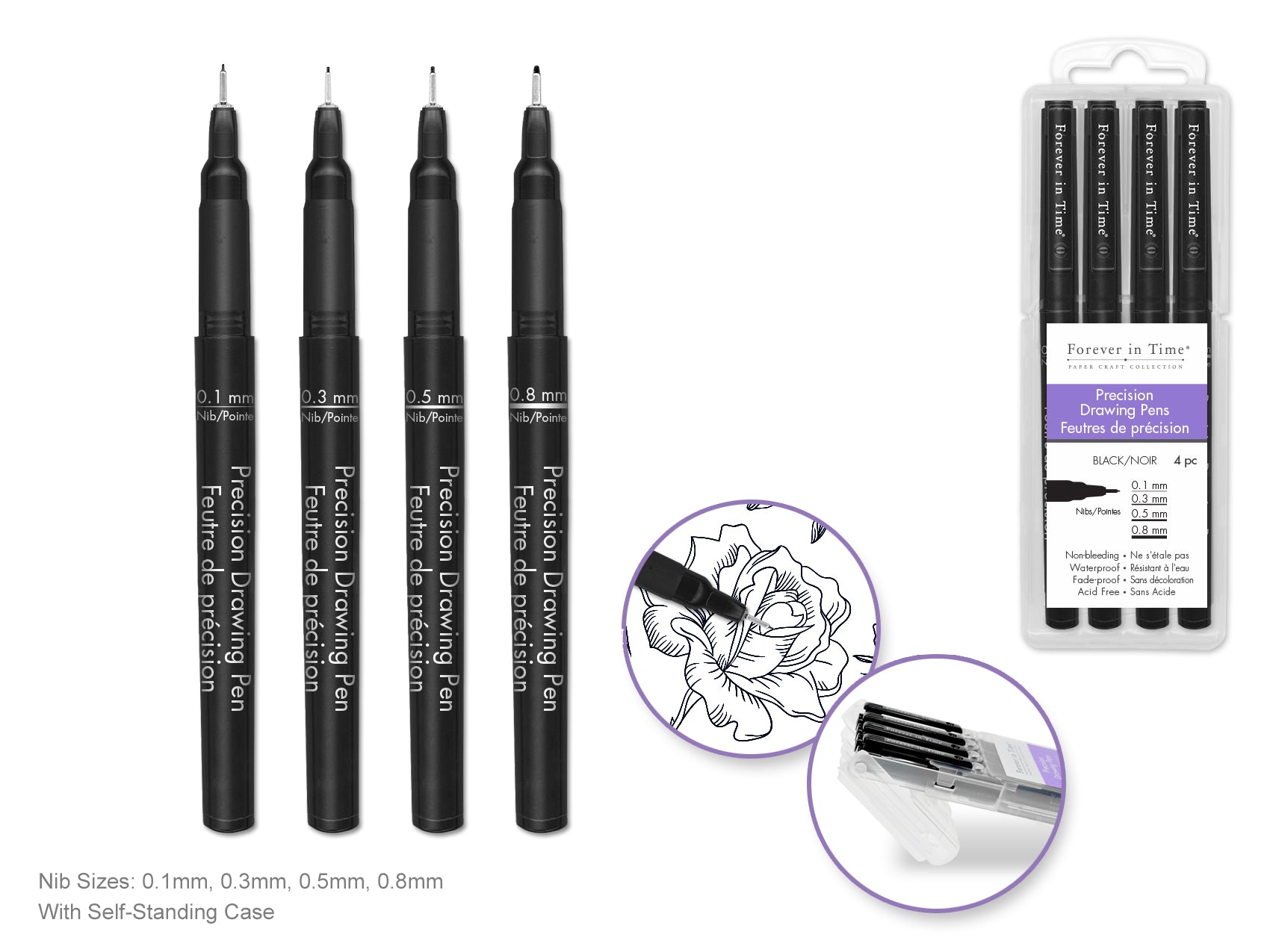 Paper Craft Writer: Black Ink Precision Drawing Pen Value Case 4pc Asst