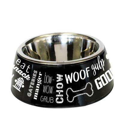 Item Name: Pet Bowl-Melamine & Stainless Woof Design-XL