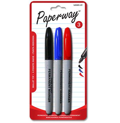Item Name: PERMANENT MARKERS - 3 BLACK, RED, BLUE