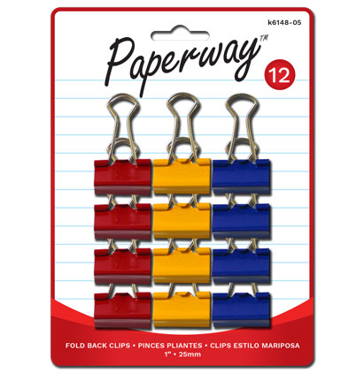 Item Name: FOLD-BACK CLIPS - 12, COLORS 1"