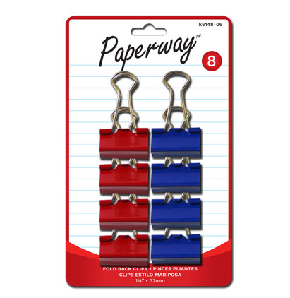 Item Name: FOLD-BACK CLIPS - 8, COLORS 1-1/4"