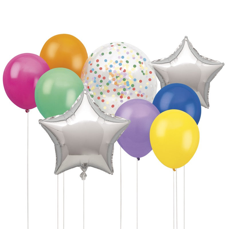 Colorful Star Foil & Latex Balloon Bouquet Kit - Pack of 9.