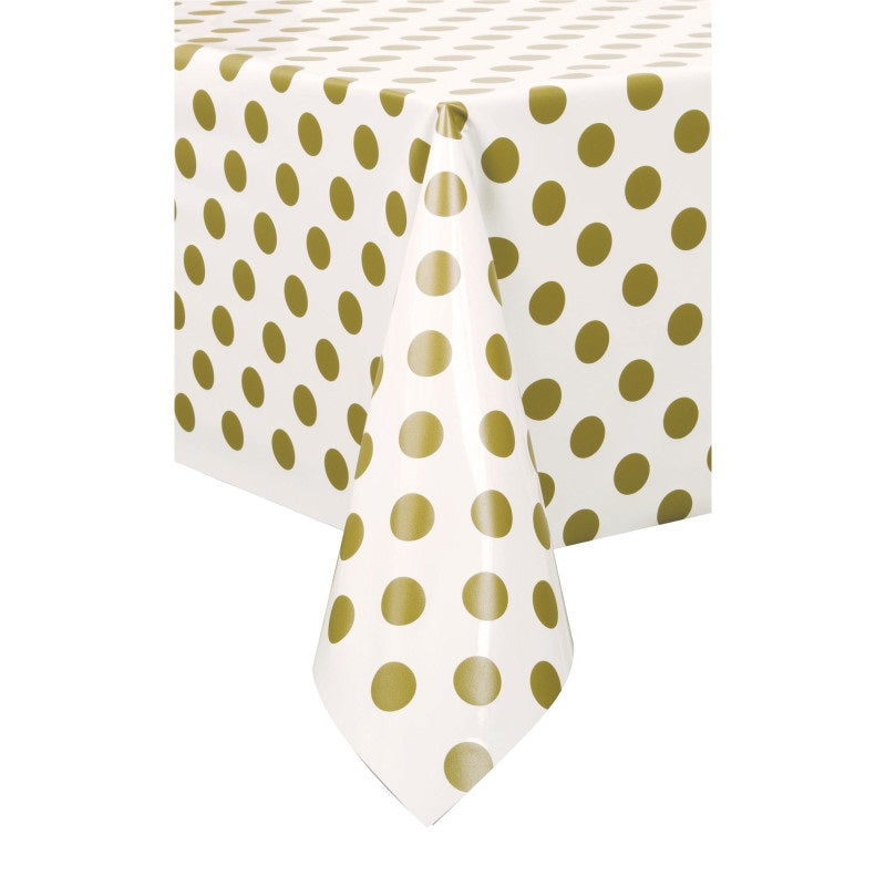 Gold Dots Rectangular Plastic Table Cover  54" x 108"