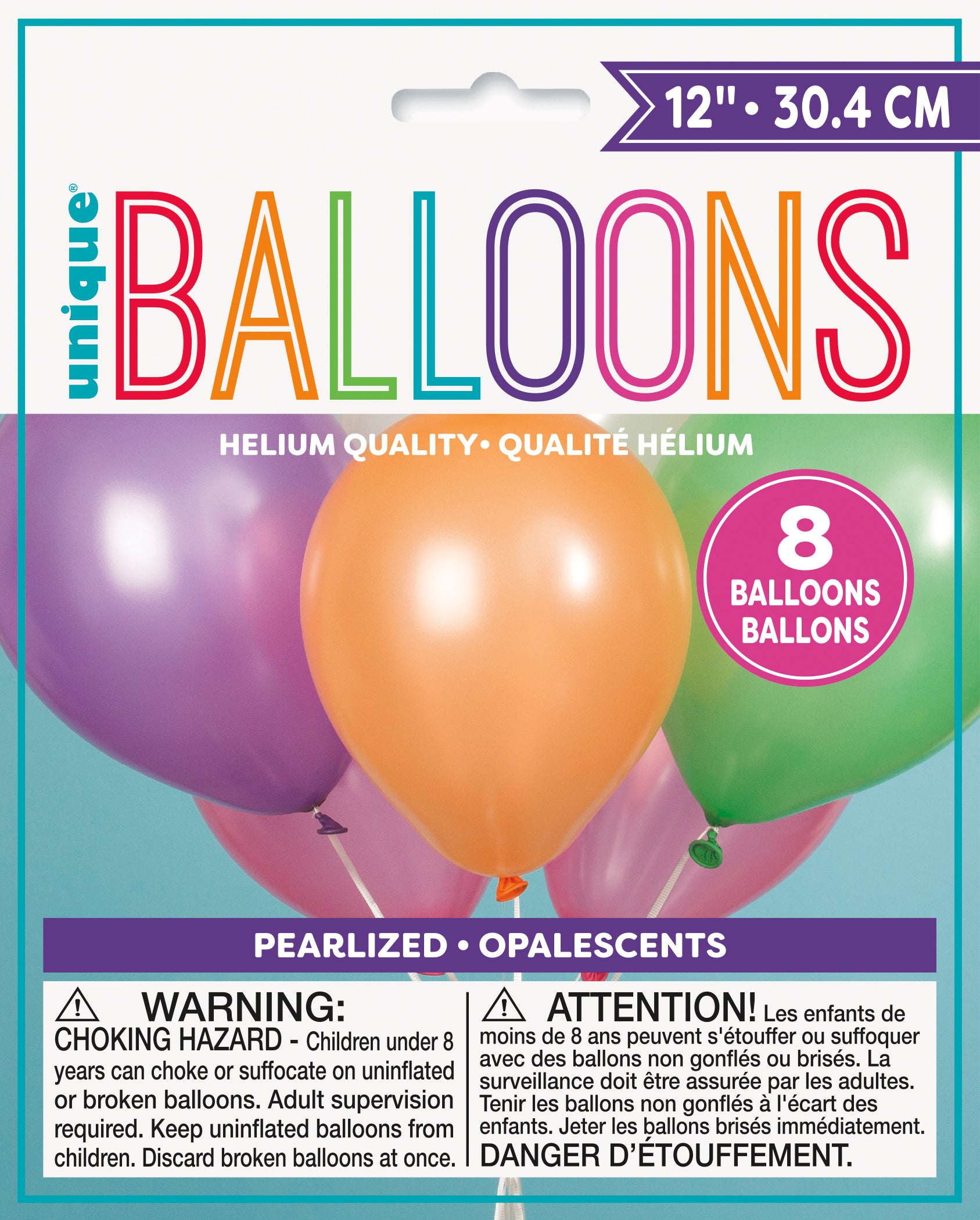 12" Latex Balloons - Pack of 8 - Assorted Pastel.
