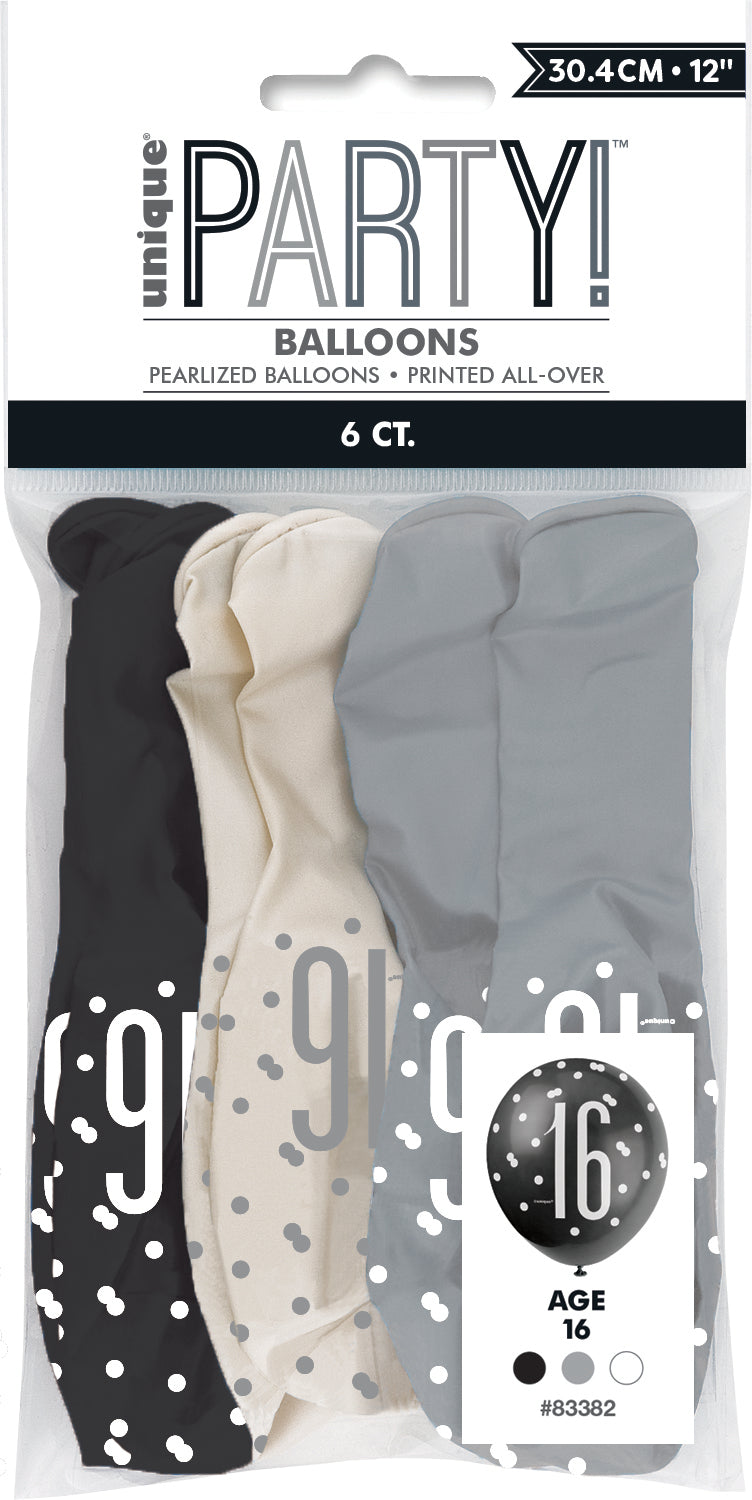Latex Balloon 12"-Glitz Black Number 16 Assorted,6ct