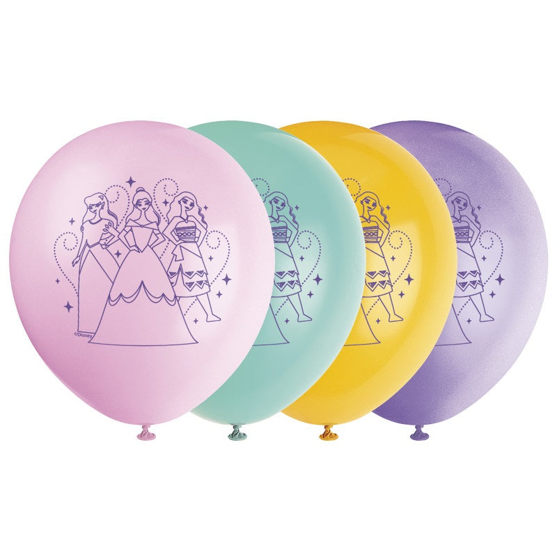 Helium filled - Disney Princess 12 Latex Balloons. Please mention the ribbon colour and the pick up date and time in the order notes section located in the cart page.