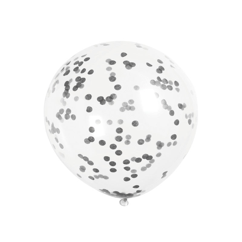 Helium filled - Clear Latex Balloons with Black Confetti 12 6ct - Pre-Filled. Please mention the ribbon colour and the pick up date and time in the order notes section located in the cart page.